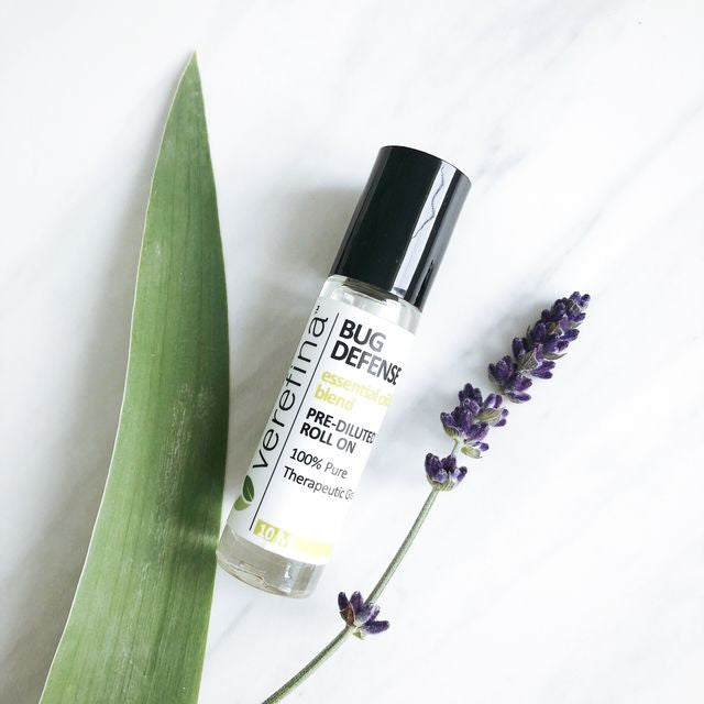 Our Bug Defense Roll-On is a proprietary blend of essential oils (citronella, eucalyptus, cedarwood, lemongrass, lavender, litsea, tea tree, patchouli, and catnip) in a base of fractionated coconut oil and neem! This blend is a safe and effective way to keep a wide array of bugs away! Simply roll a small amount of Bug Defense onto hands, and spread over exposed skin. Wash hands after application to avoid getting the product in your eyes. Lasts up to four hours!